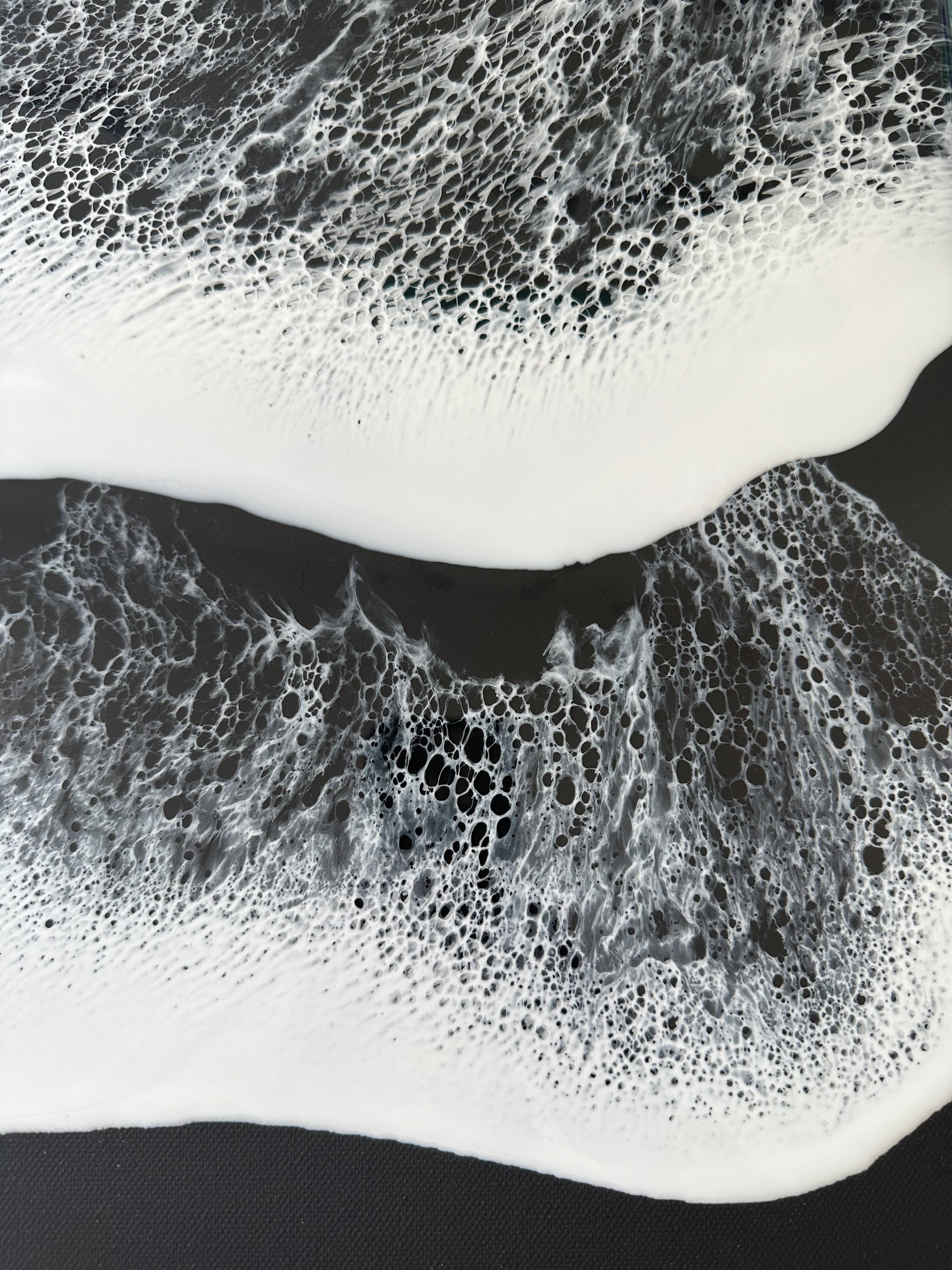 I’m at Black canvas with two layers of 3-D ocean waves. A stunning statement piece for your beach house.